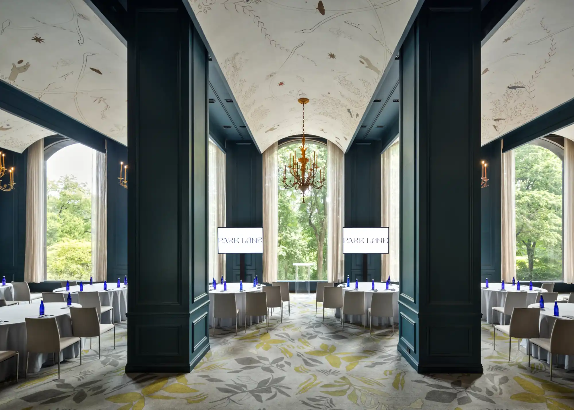 A majestic «Casino-Hotel» with a full wall of soaring windows looking onto Central Park and stunning murals on the ceiling above. Park Room tells a story and makes a big impression with details big and small.